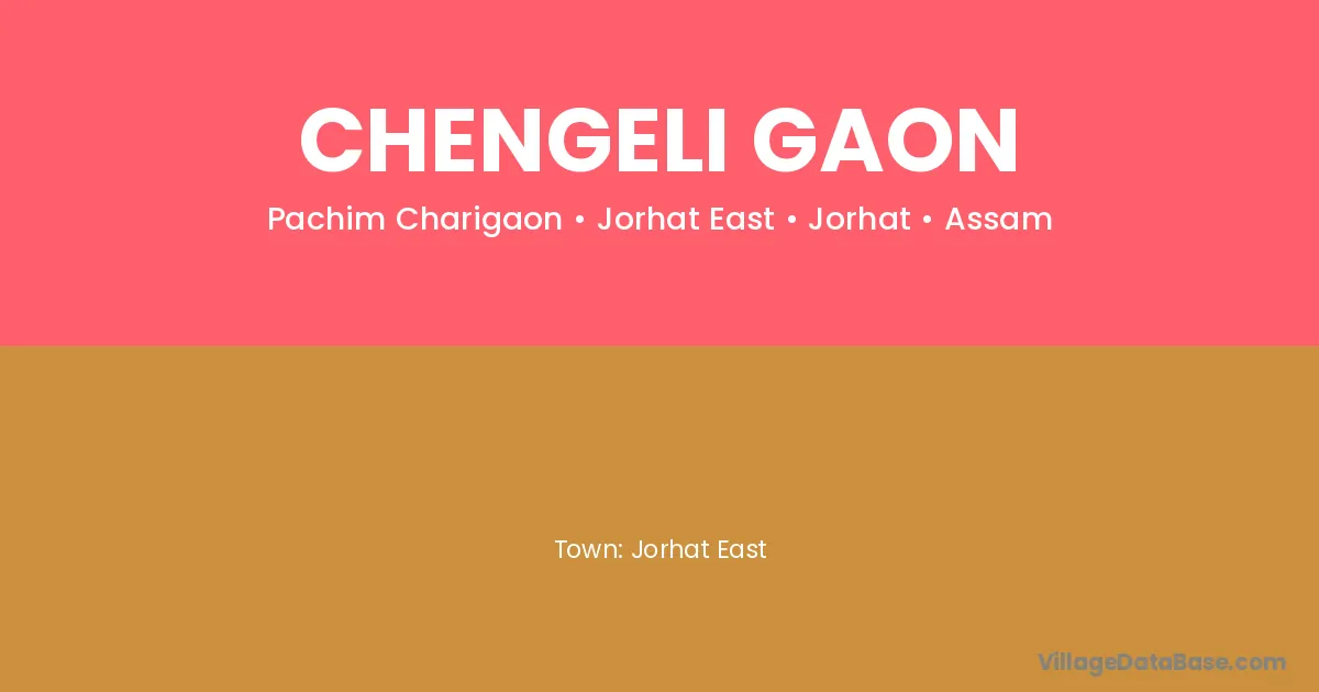 Jorhat East is the nearest town to Chengeli Gaon village for major economic activities