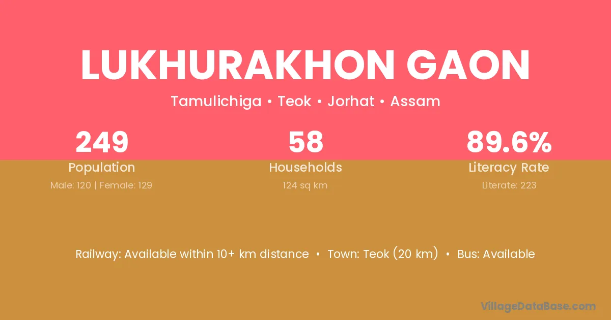 Lukhurakhon Gaon village has a total population of 249 people, of which 120 are males and 129 are females.