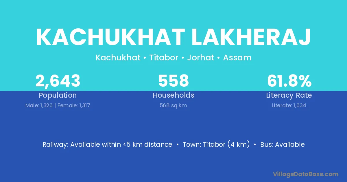 Titabor (4 km) is the nearest town to Kachukhat Lakheraj village for major economic activities and is located approximately 4 km away.
