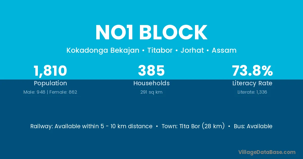 Tita Bor (28 km) is the nearest town to No1 Block village for major economic activities and is located approximately 28 km away.