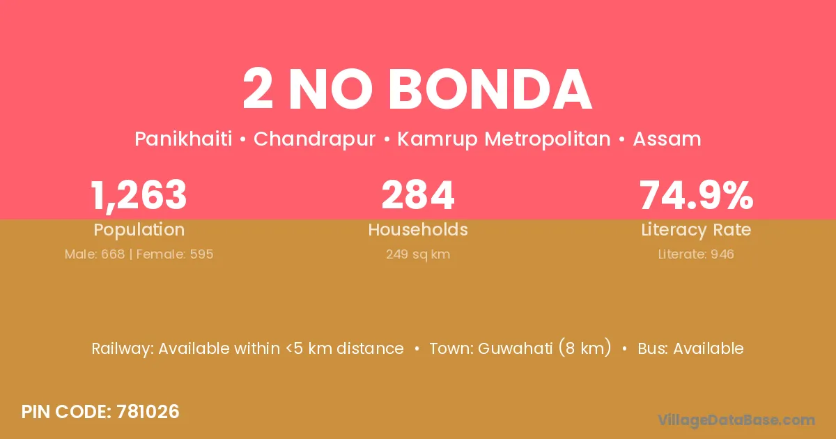 According to Census 2011 information, the village code of 2 No Bonda village is 781026.