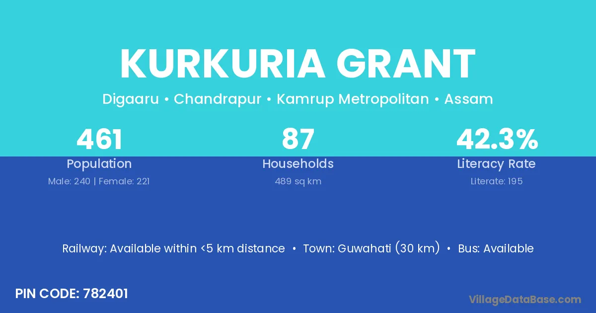 Guwahati (30 km) is the nearest town to Kurkuria Grant village for major economic activities and is located approximately 30 km away.