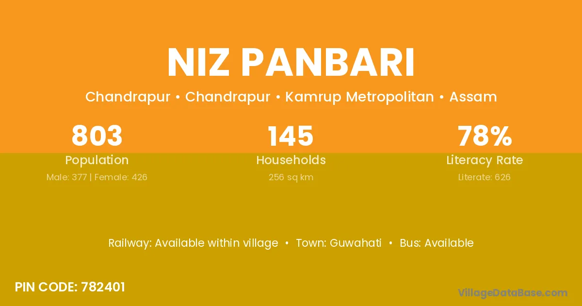 Niz Panbari village has a total population of 803 people, of which 377 are males and 426 are females.