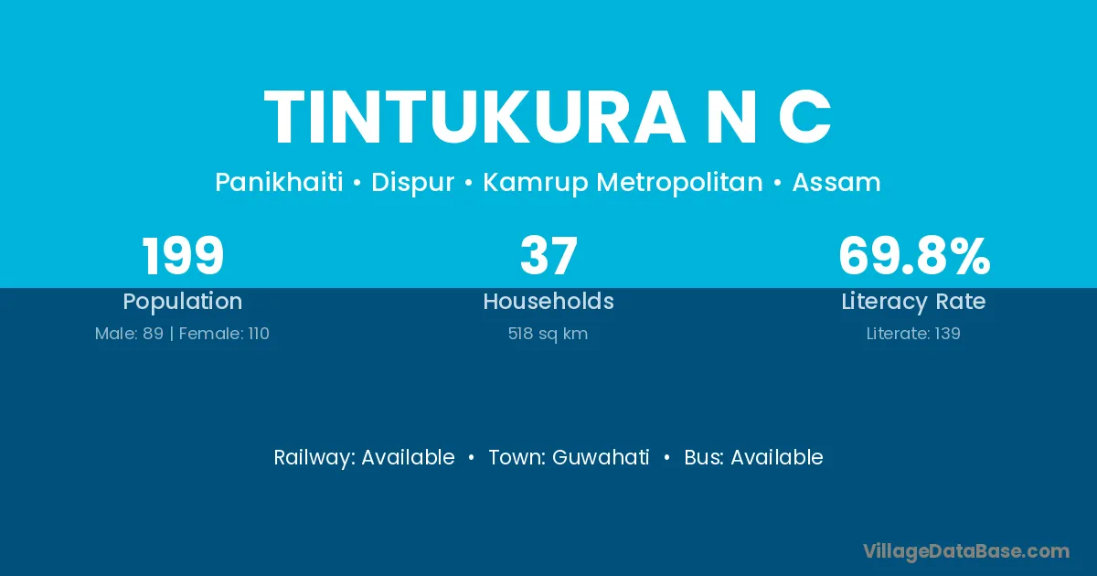 Tintukura N C village has a total population of 199 people, of which 89 are males and 110 are females.