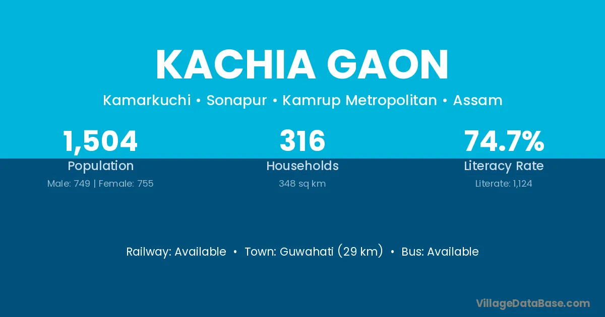 Kachia Gaon village has a total population of 1,504 people, of which 749 are males and 755 are females.