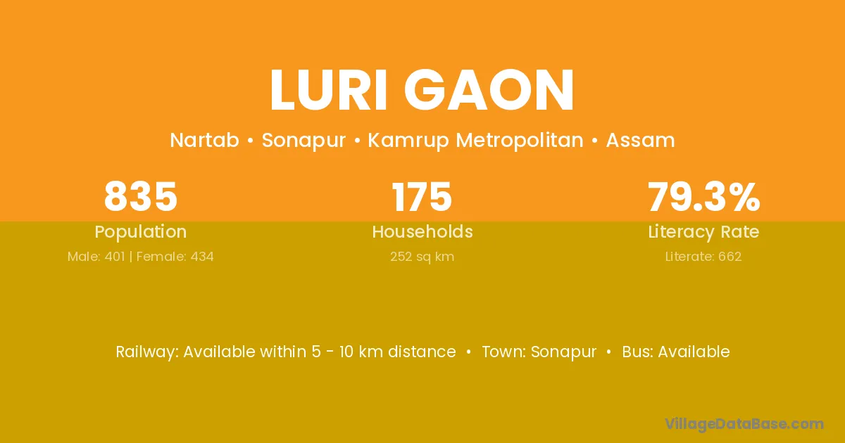 Sonapur is the nearest town to Luri Gaon village for major economic activities