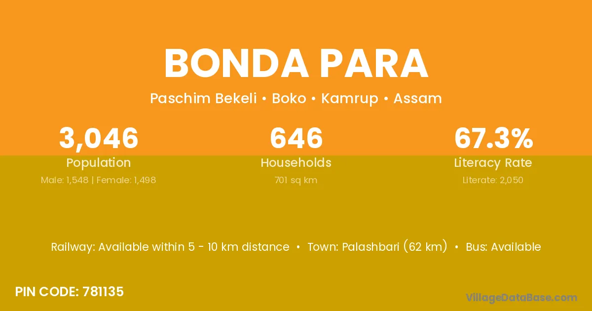 Bonda Para village is located in the Boko Subdivision of the Kamrup district in Assam .
