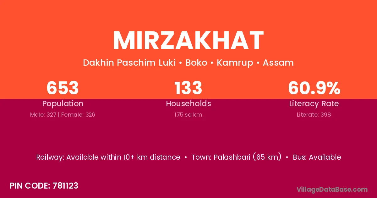 According to Census 2011 information, the village code of Mirzakhat village is 781123.
