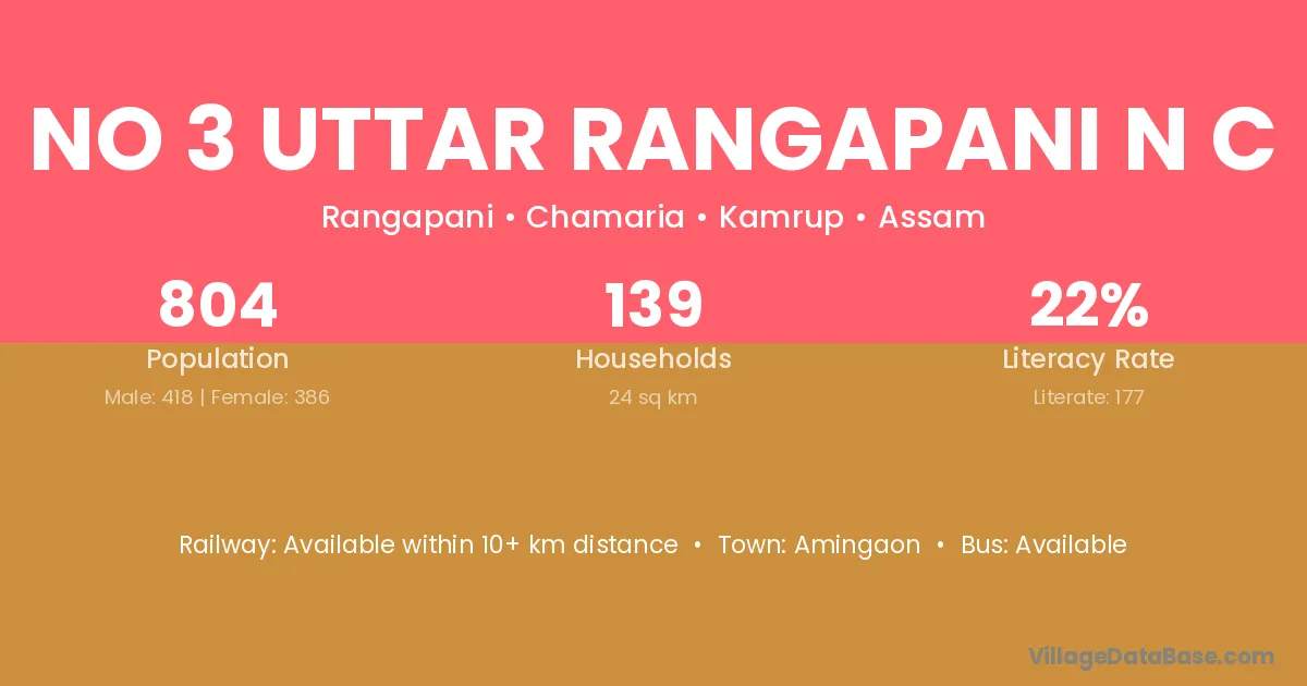 No 3 Uttar Rangapani N C village has a total population of 804 people, of which 418 are males and 386 are females.