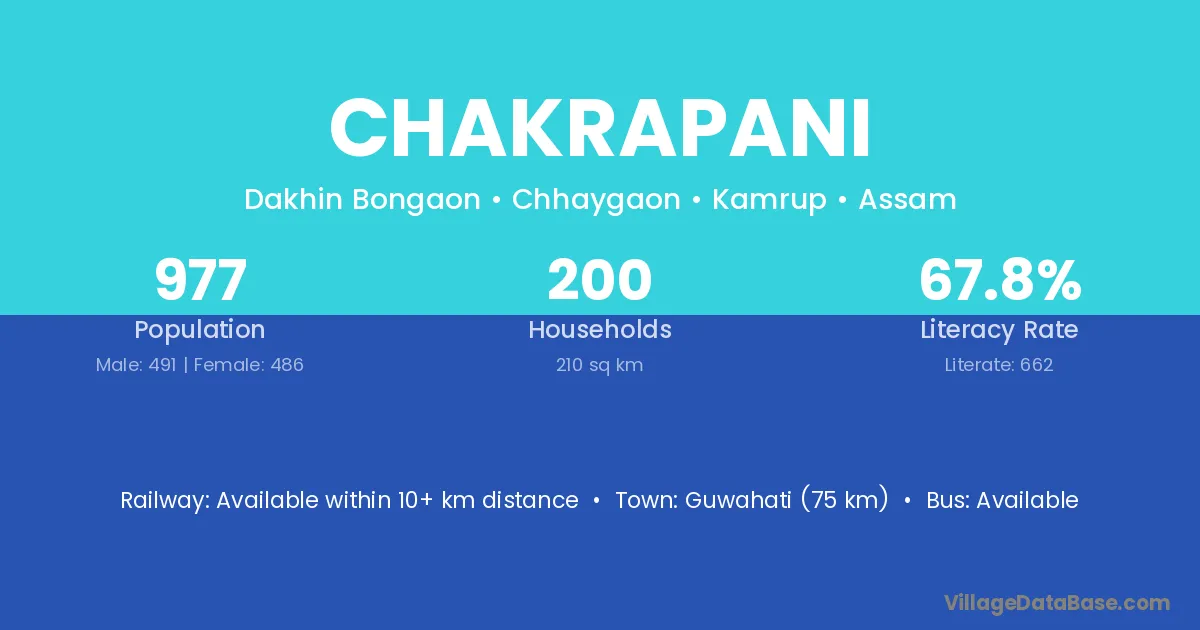 Chakrapani village has a total population of 977 people, of which 491 are males and 486 are females.