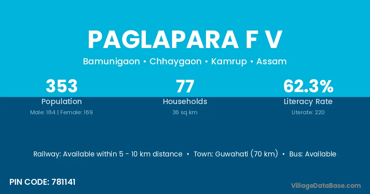 Guwahati (70 km) is the nearest town to Paglapara F V village for major economic activities and is located approximately 70 km away.