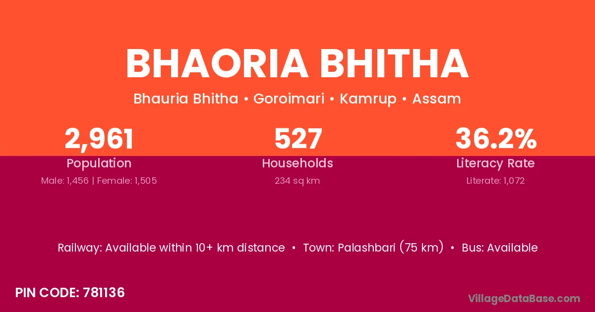 Bhaoria Bhitha village is located in the Goroimari Subdivision of the Kamrup district in Assam .