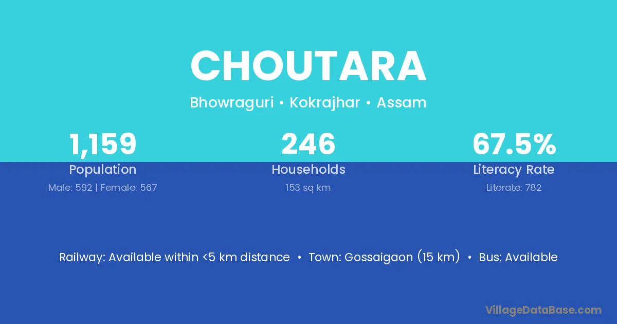 Palasbari (65 km) is the nearest town to Choutara village for major economic activities and is located approximately 65 km away.