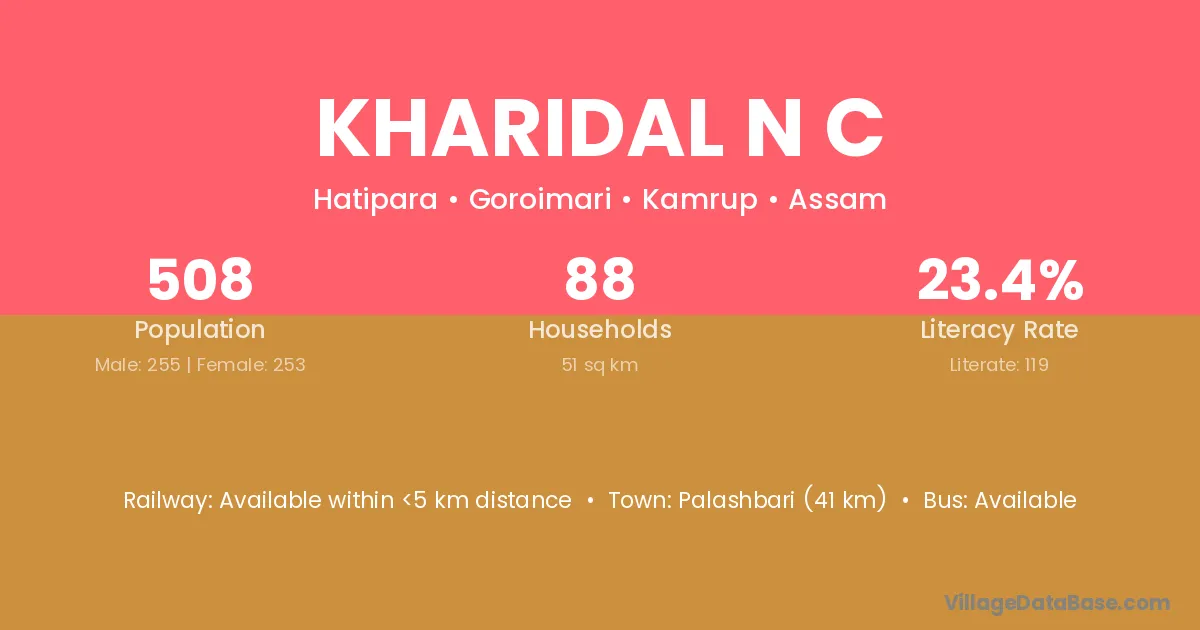 Kharidal N C village has a total population of 508 people, of which 255 are males and 253 are females.