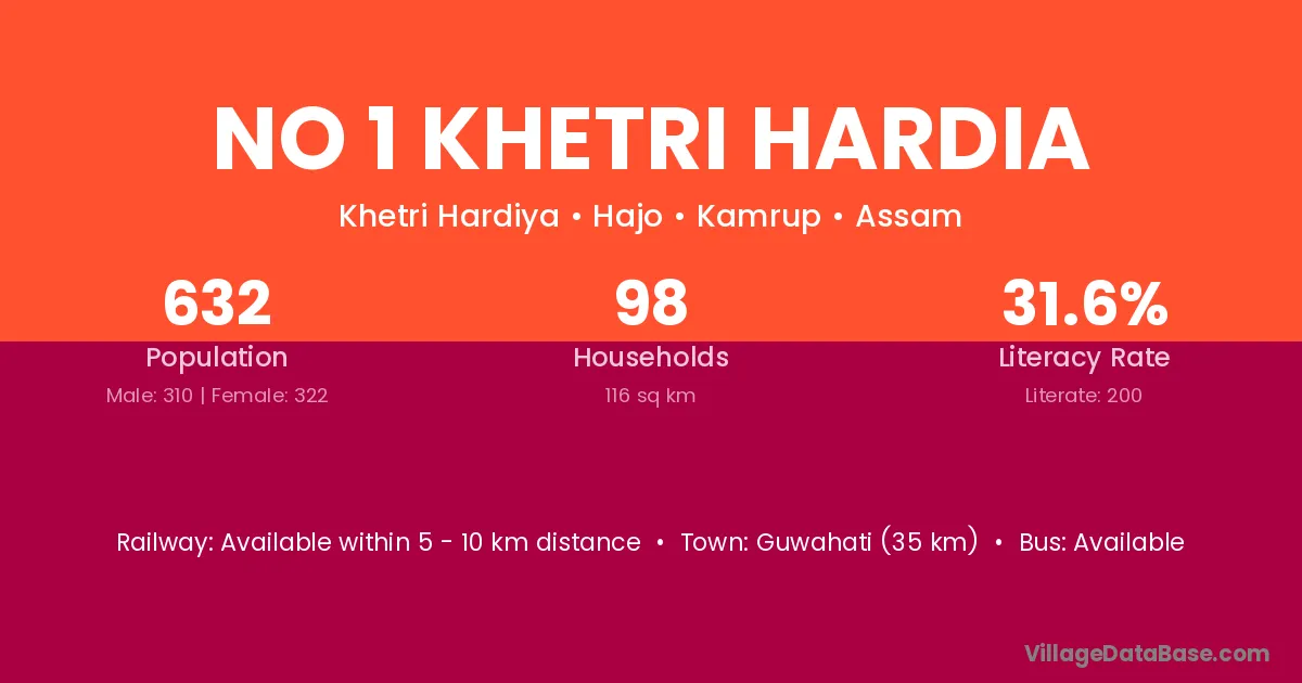 Guwahati (35 km) is the nearest town to No 1 Khetri Hardia village for major economic activities and is located approximately 35 km away.