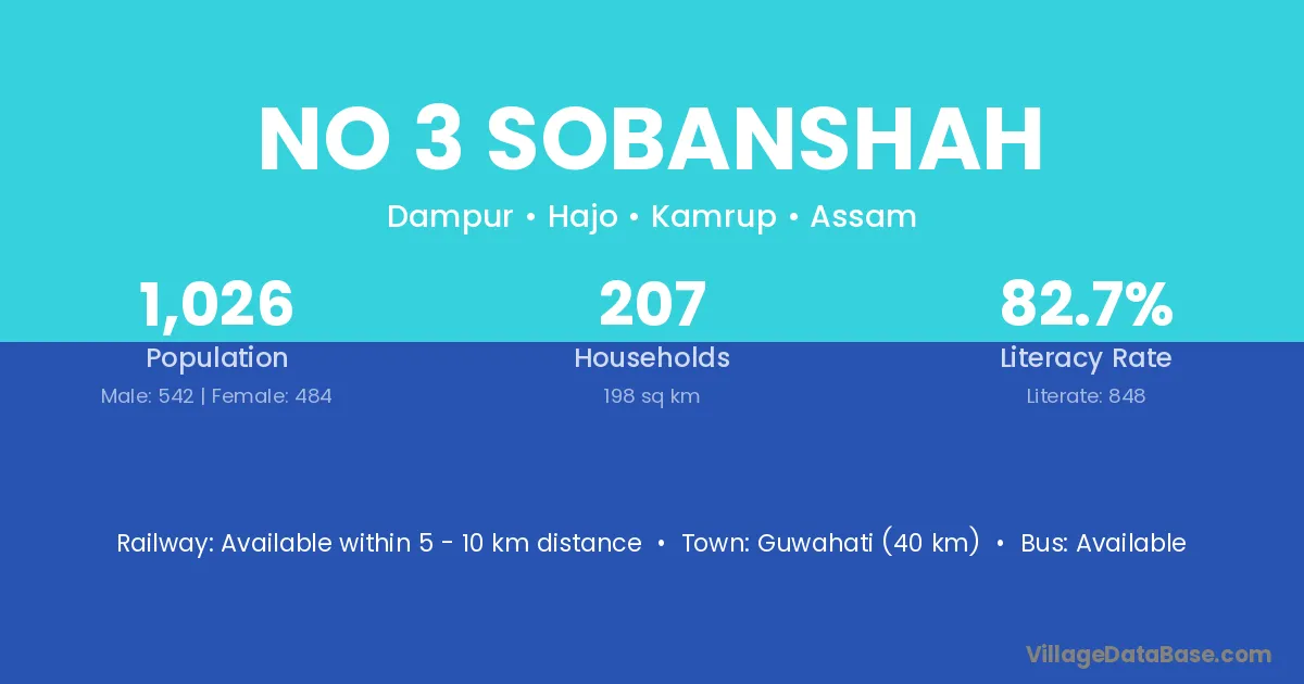 Guwahati (40 km) is the nearest town to No 3 Sobanshah village for major economic activities and is located approximately 40 km away.