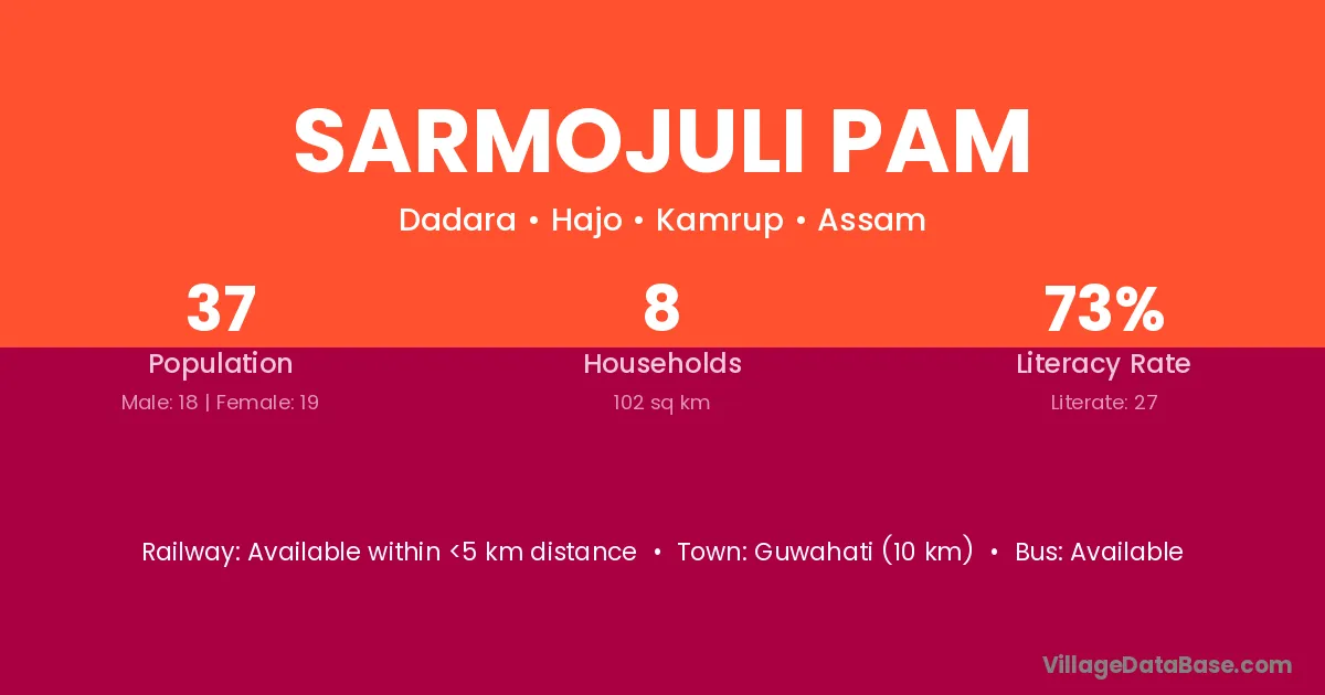 Guwahati (10 km) is the nearest town to Sarmojuli Pam village for major economic activities and is located approximately 10 km away.