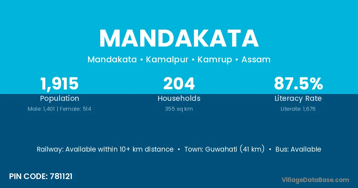 Guwahati (41 km) is the nearest town to Mandakata village for major economic activities and is located approximately 41 km away.