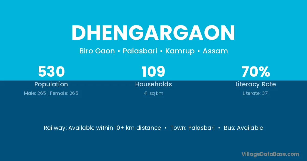 Dhengargaon village has a total population of 530 people, of which 265 are males and 265 are females.