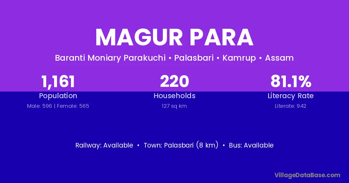 Palasbari (8 km) is the nearest town to Magur Para village for major economic activities and is located approximately 8 km away.