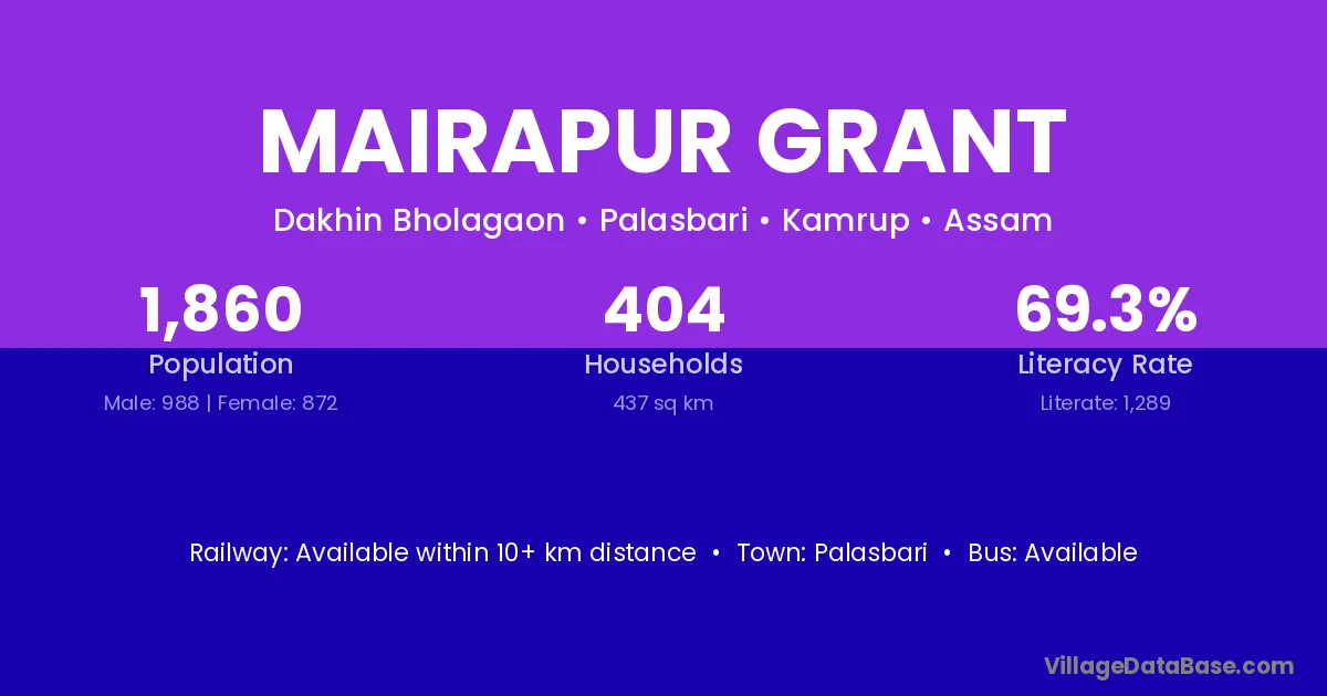 Palasbari is the nearest town to Mairapur Grant village for major economic activities