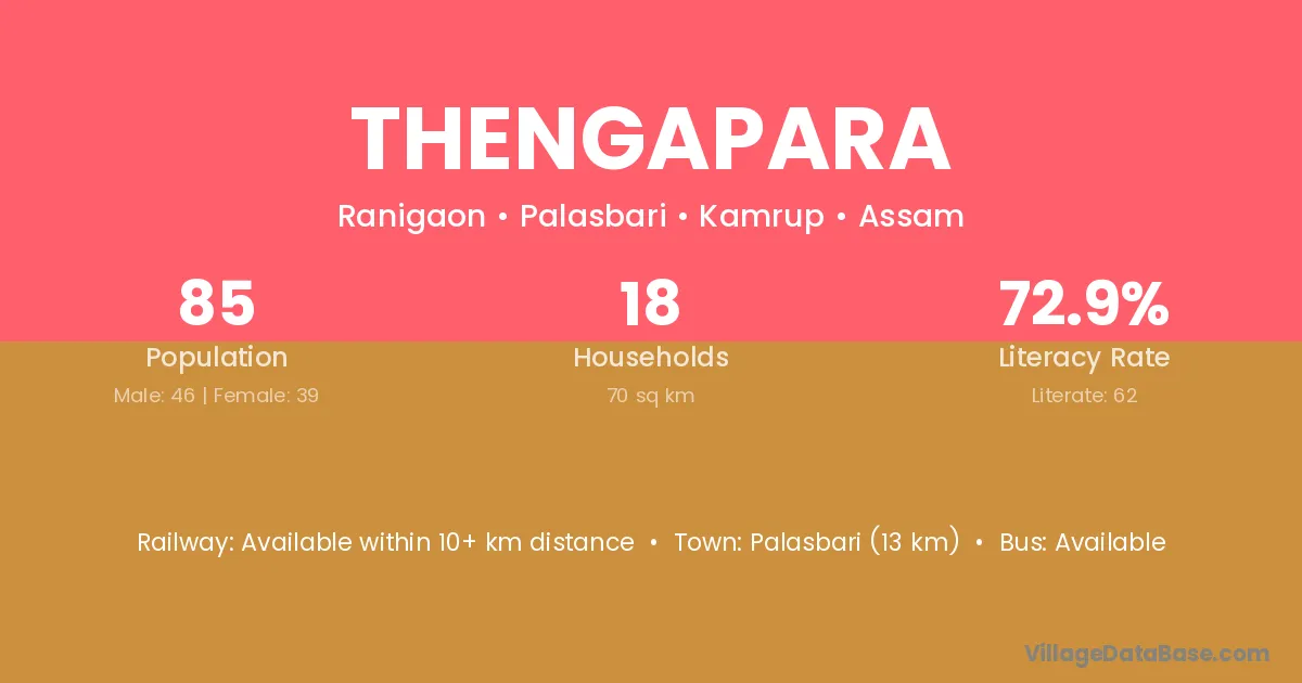Thengapara village has a total population of 85 people, of which 46 are males and 39 are females.