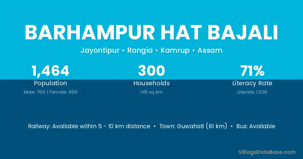 Barhampur Hat Bajali village has a total population of 1,464 people, of which 769 are males and 695 are females.