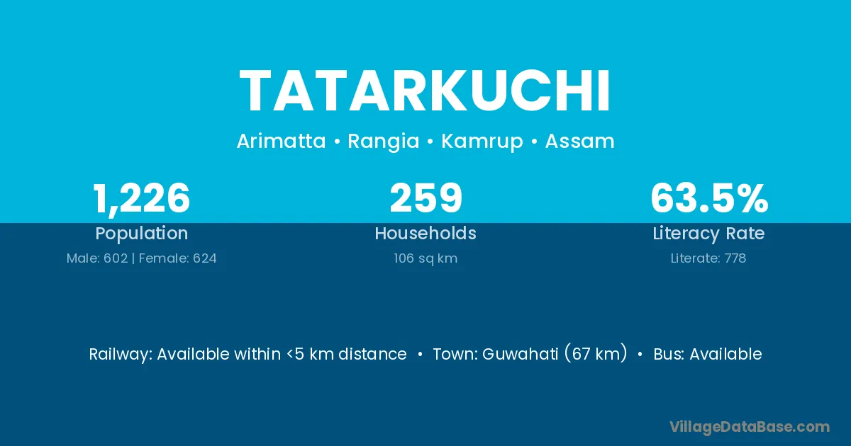 Guwahati (67 km) is the nearest town to Tatarkuchi village for major economic activities and is located approximately 67 km away.