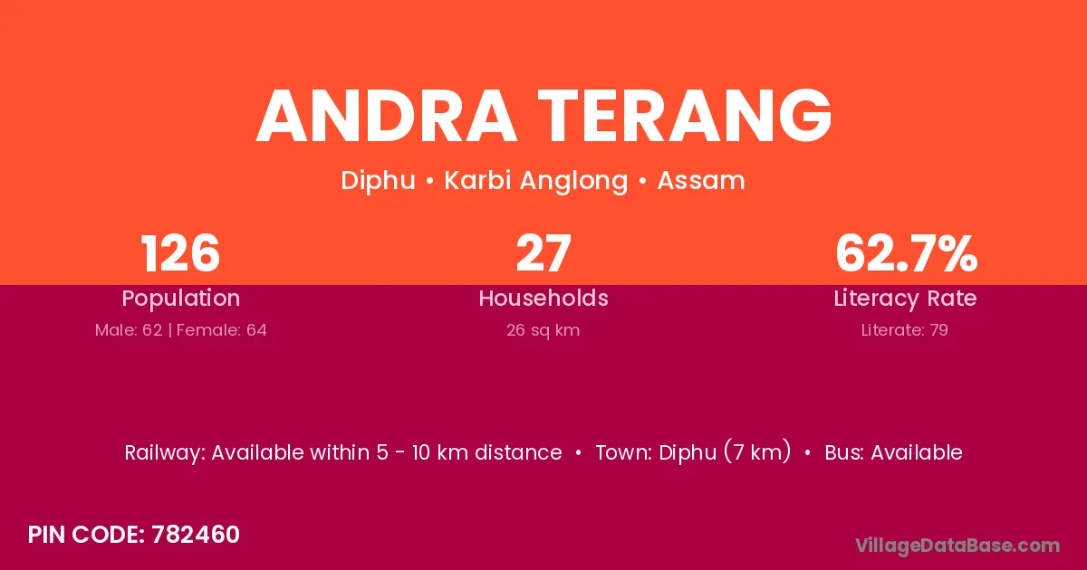 Diphu (7 km) is the nearest town to Andra Terang village for major economic activities and is located approximately 7 km away.