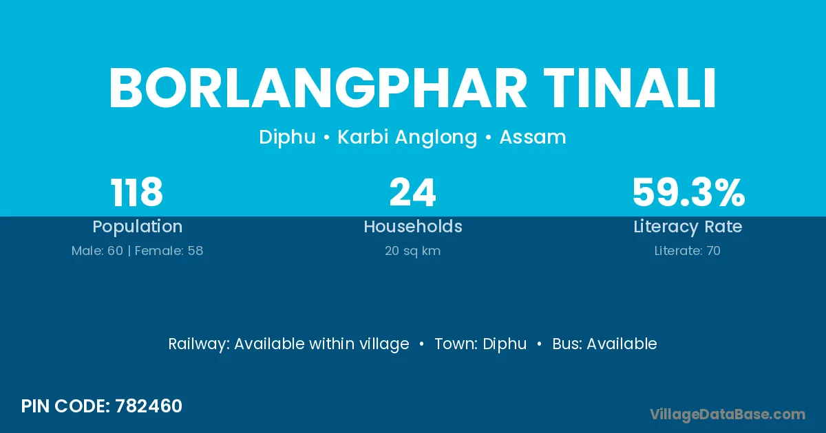 Borlangphar Tinali village has a total population of 118 people, of which 60 are males and 58 are females.