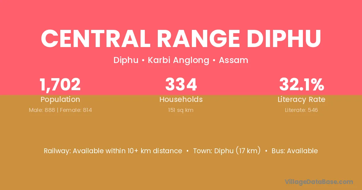 Diphu (17 km) is the nearest town to Central Range Diphu village for major economic activities and is located approximately 17 km away.