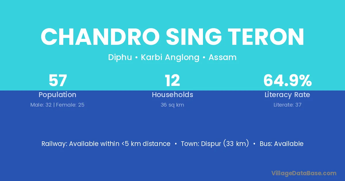 Chandro Sing Teron village has a total population of 57 people, of which 32 are males and 25 are females.
