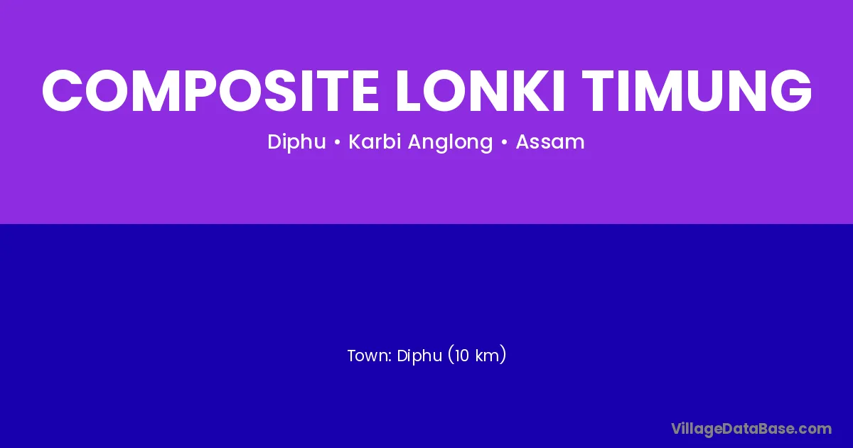 Diphu (10 km) is the nearest town to Composite Lonki Timung village for major economic activities and is located approximately 10 km away.