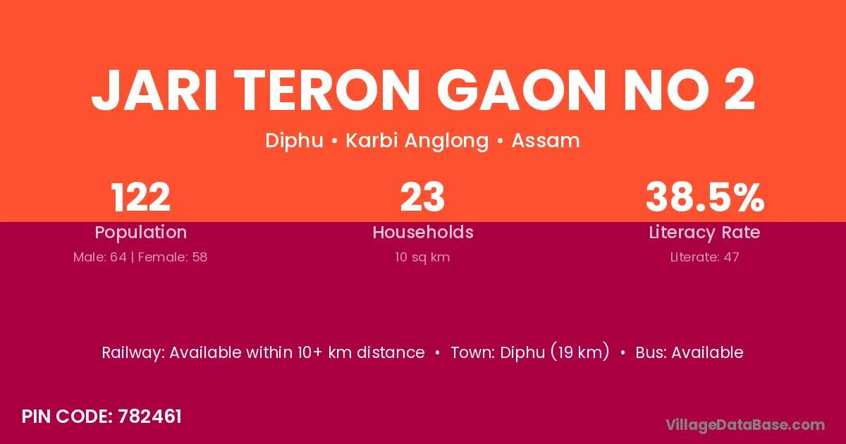 Jari Teron Gaon No 2 village has a total population of 122 people, of which 64 are males and 58 are females.