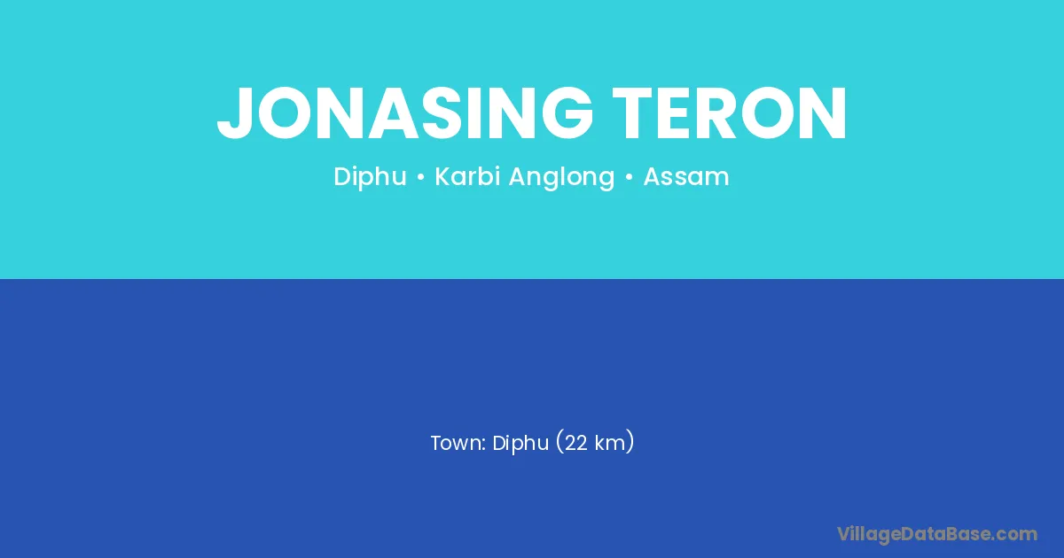 Diphu (22 km) is the nearest town to Jonasing Teron village for major economic activities and is located approximately 22 km away.