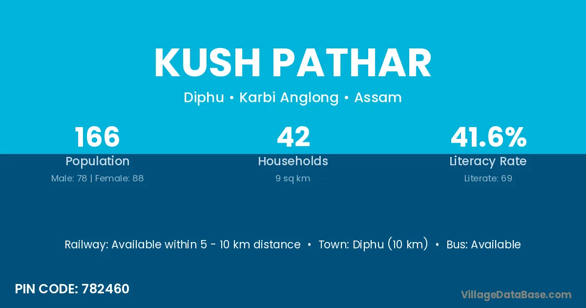Diphu (10 km) is the nearest town to Kush Pathar village for major economic activities and is located approximately 10 km away.