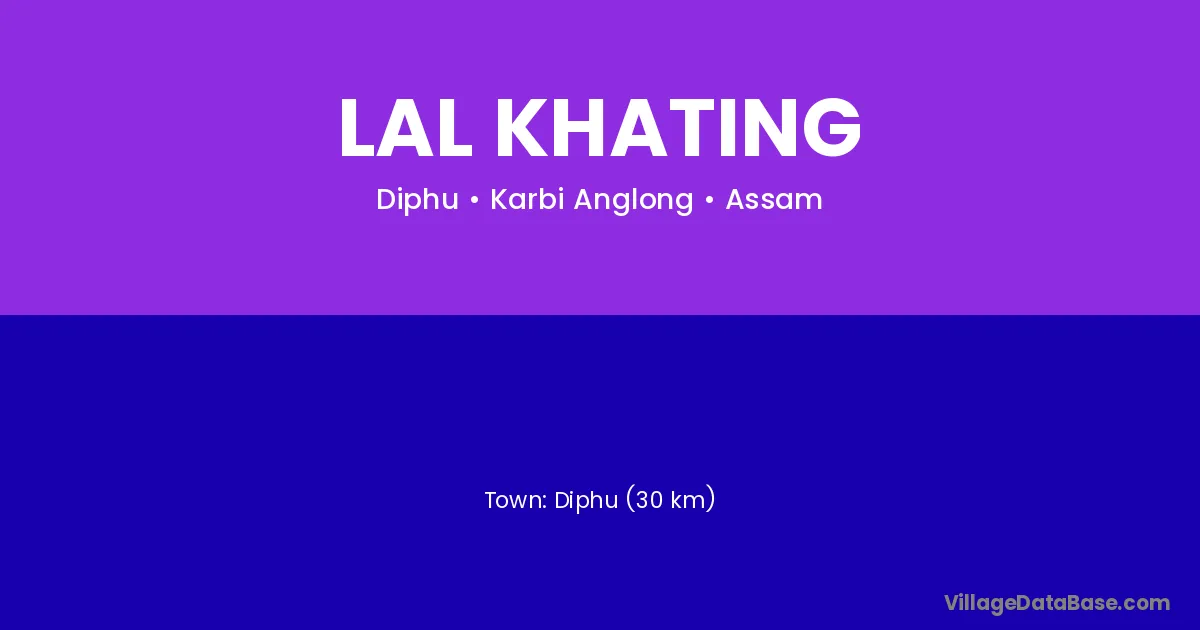 Diphu (30 km) is the nearest town to Lal Khating village for major economic activities and is located approximately 30 km away.