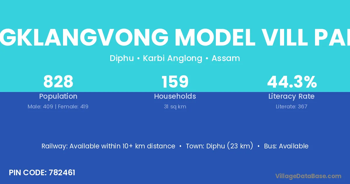 Diphu (23 km) is the nearest town to Langklangvong Model Vill Part A village for major economic activities and is located approximately 23 km away.