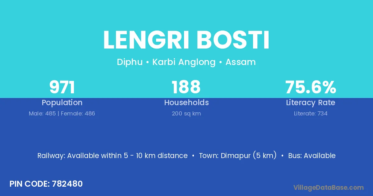 Lengri Bosti village has a total population of 971 people, of which 485 are males and 486 are females.