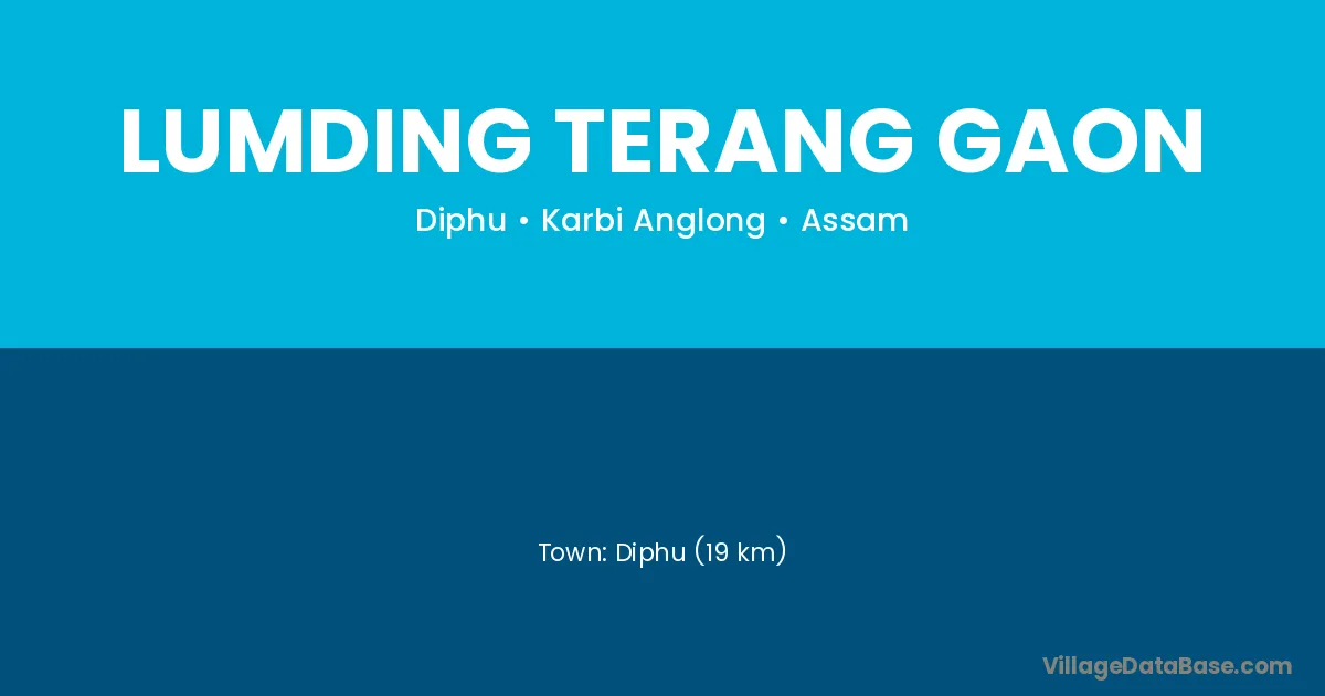 Diphu (19 km) is the nearest town to Lumding Terang Gaon village for major economic activities and is located approximately 19 km away.