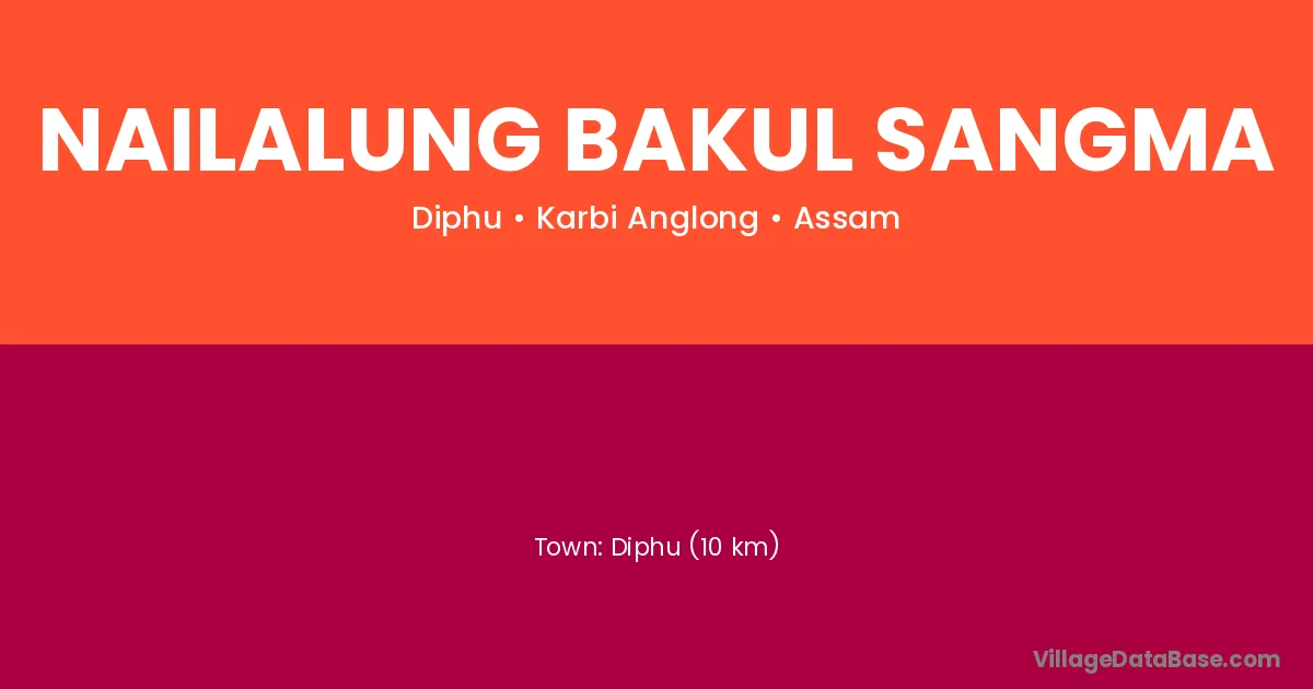 Diphu (10 km) is the nearest town to Nailalung Bakul Sangma village for major economic activities and is located approximately 10 km away.