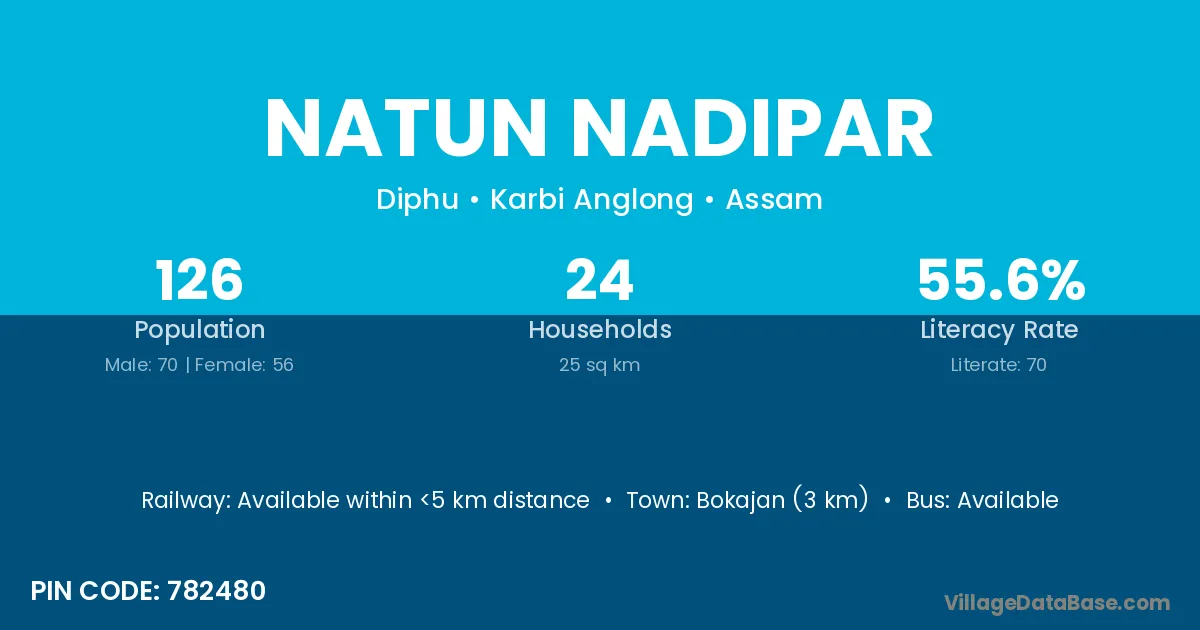Bokajan (3 km) is the nearest town to Natun Nadipar village for major economic activities and is located approximately 3 km away.