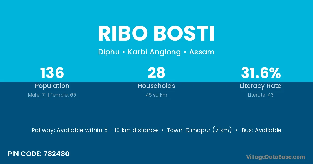Ribo Bosti village has a total population of 136 people, of which 71 are males and 65 are females.