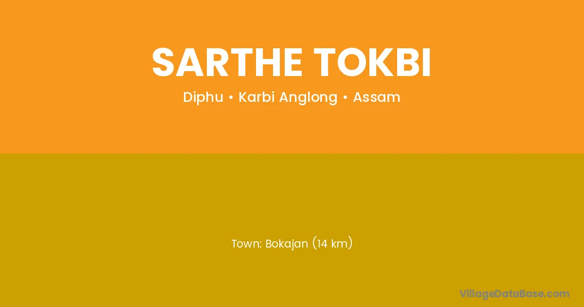 Bokajan (14 km) is the nearest town to Sarthe Tokbi village for major economic activities and is located approximately 14 km away.