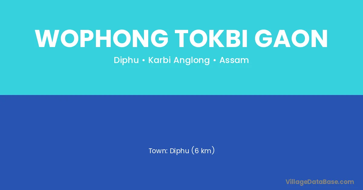 Diphu (6 km) is the nearest town to Wophong Tokbi Gaon village for major economic activities and is located approximately 6 km away.
