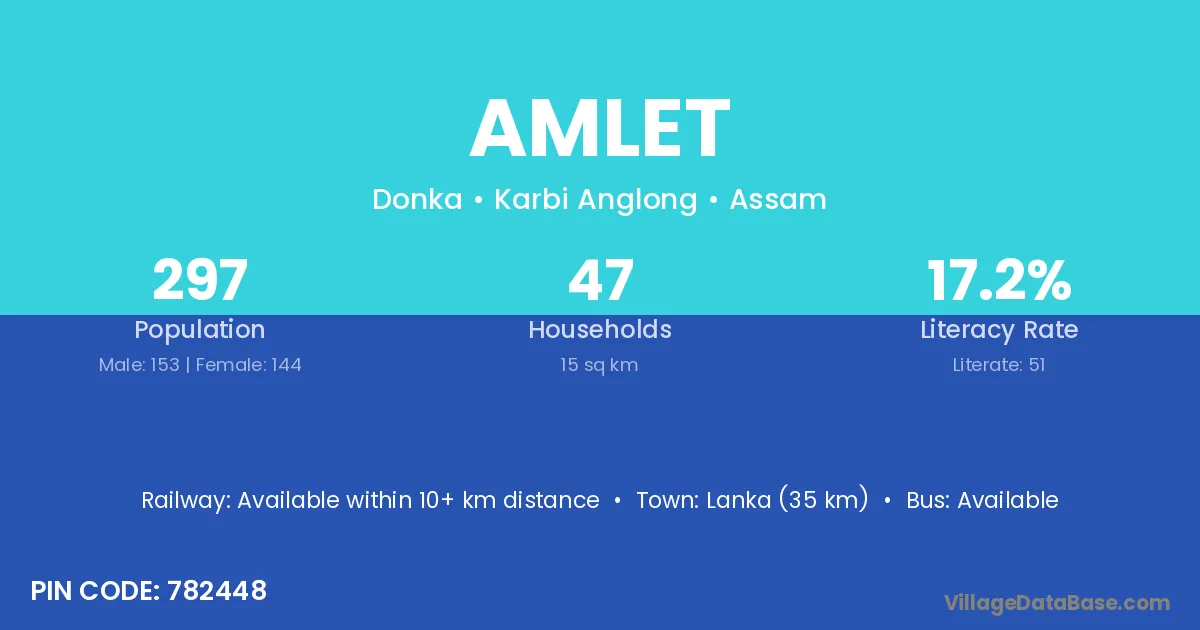 Lanka (35 km) is the nearest town to Amlet village for major economic activities and is located approximately 35 km away.