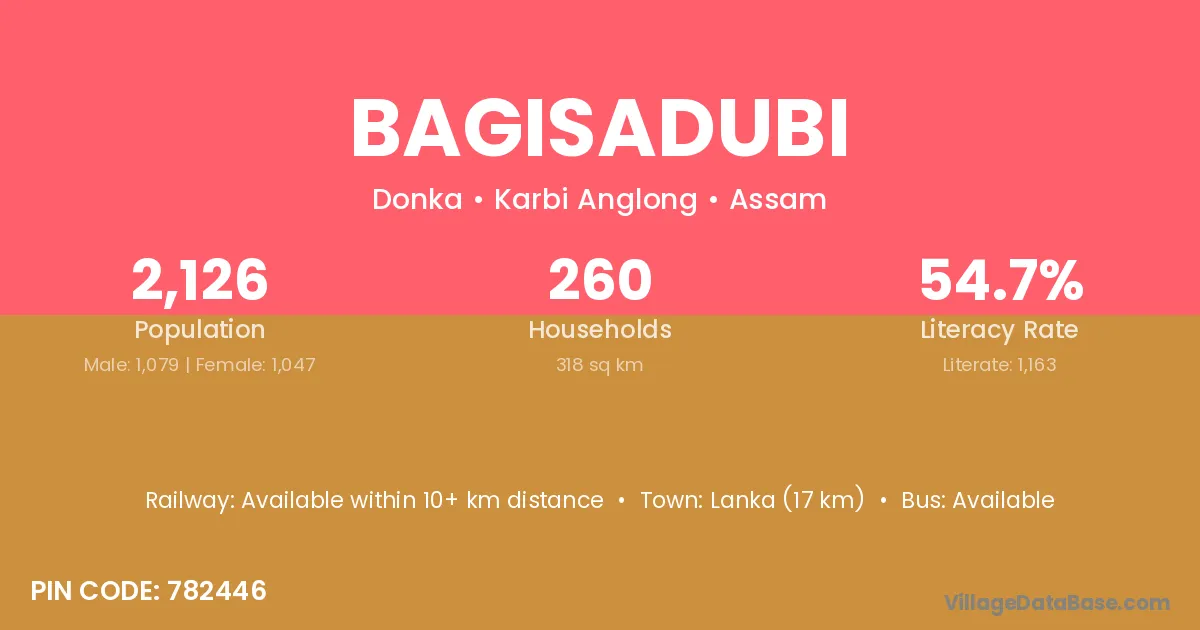 Lanka (17 km) is the nearest town to Bagisadubi village for major economic activities and is located approximately 17 km away.