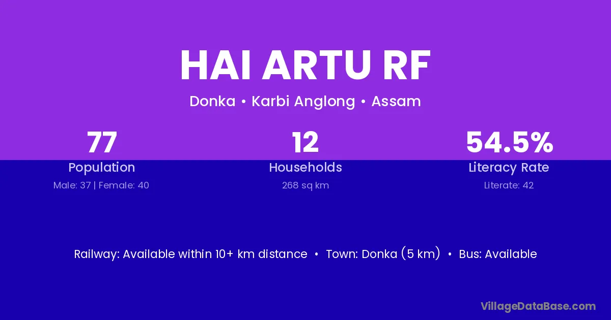 Hai Artu Rf village has a total population of 77 people, of which 37 are males and 40 are females.
