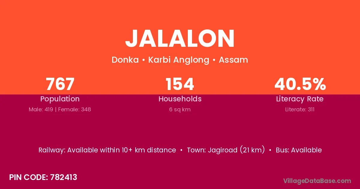 Jagiroad (21 km) is the nearest town to Jalalon village for major economic activities and is located approximately 21 km away.