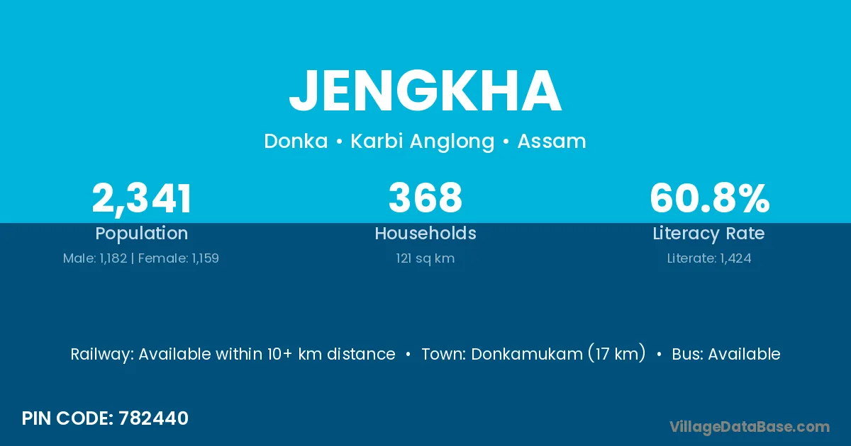 Donkamukam (17 km) is the nearest town to Jengkha village for major economic activities and is located approximately 17 km away.